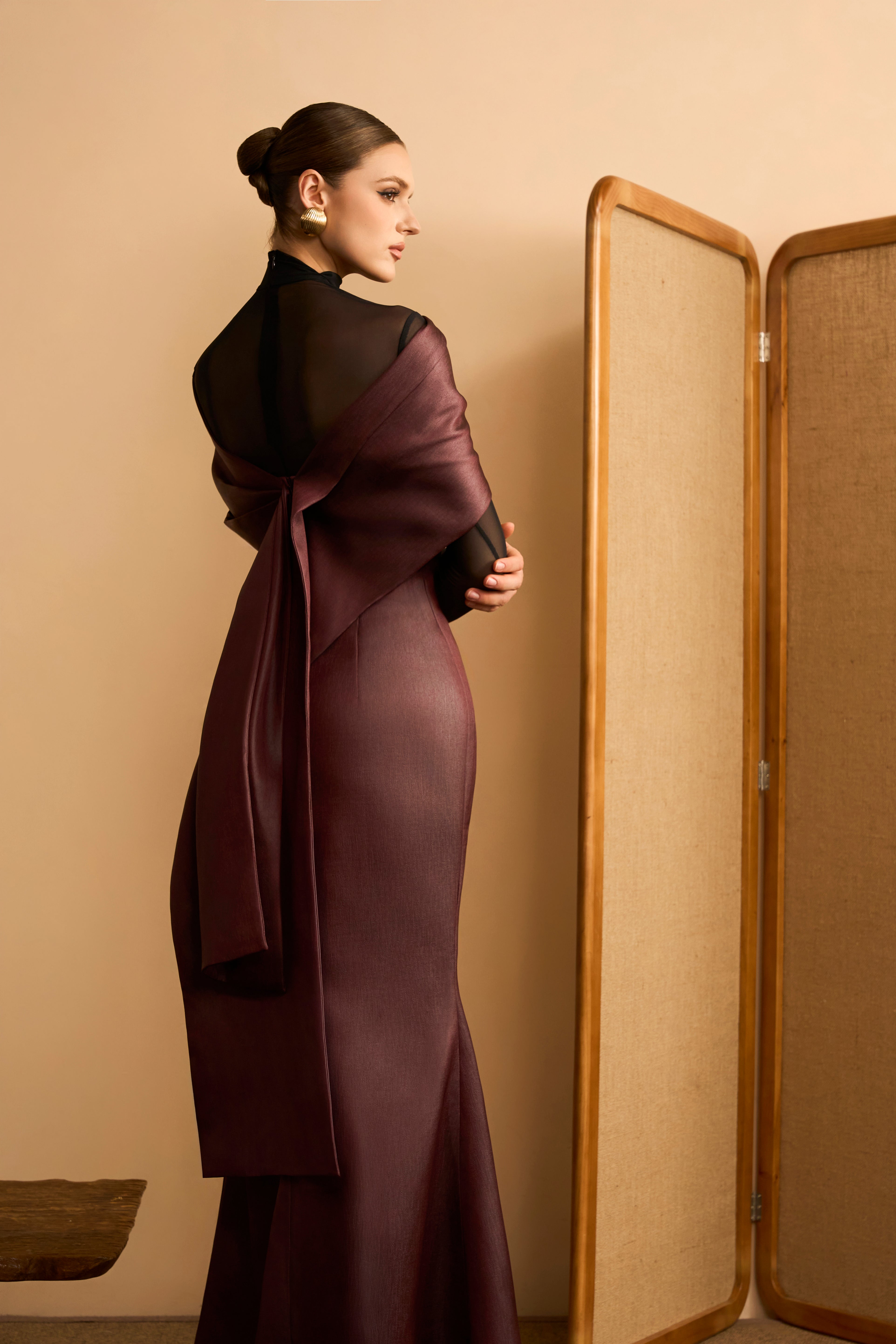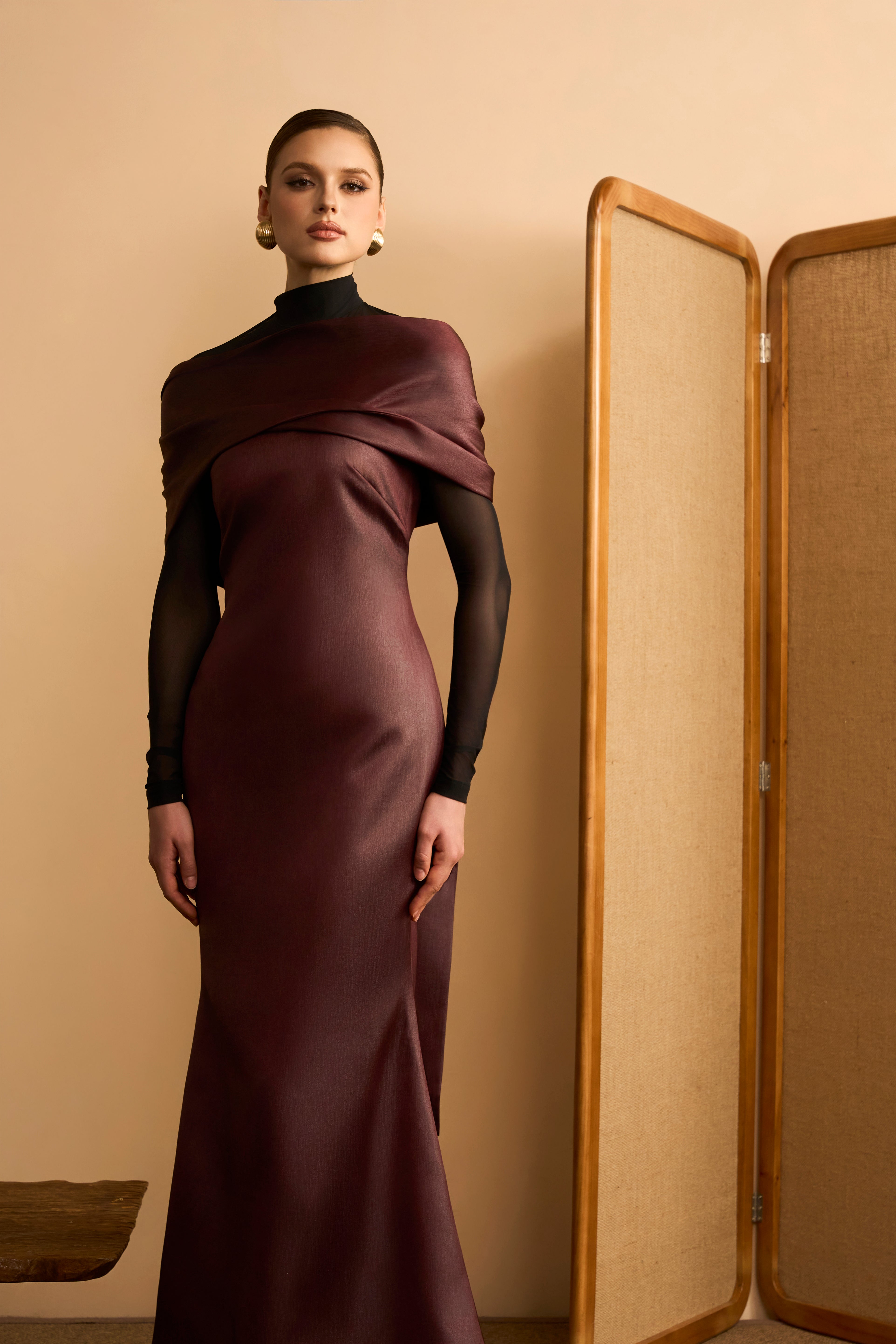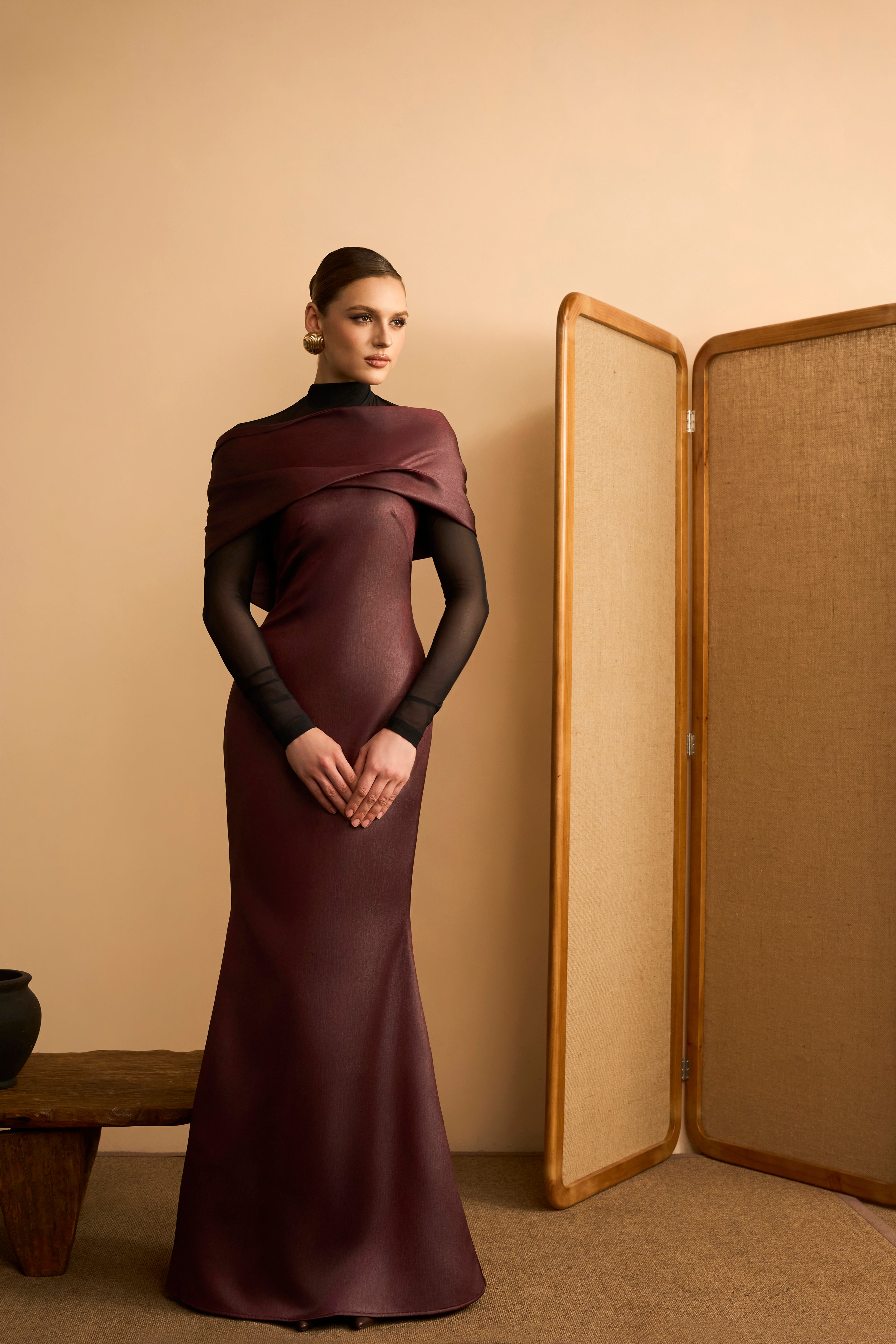 Chau Sa Trumpet Boat Neck Crinkled Satin Maxi Dress